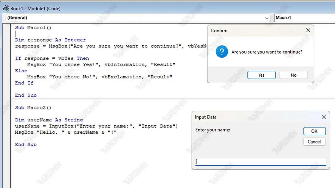 VBA (Visual Basic for Applications) é uma linguagem de programação em aplicativos do Microsoft Office, como Excel, Word e PowerPoint. Usando o VBA, os usuários podem automatizar várias tarefas, melhorar a eficiência e criar uma experiência mais interativa. Uma das coisas importantes no uso do VBA é sua capacidade de se comunicar com os usuários, seja para fornecer informações, solicitar informações ou confirmar ações antes de executar o programa.